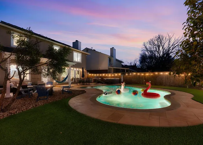 Die Villa Pool Hottub Firepit Bbq Billiard Ps4 Golf Pflugerville verfügt über geschmackvoll eingerichtete Zimmer. Jedes Zimmer ist mit komfortablen Betten ausgestattet und bietet alle Annehmlichkeiten, die den Aufenthalt angenehm gestalten. Eine einladende Atmosphäre und durchdachte Details machen das Wohnen hier besonders behaglich und unbeschwert.